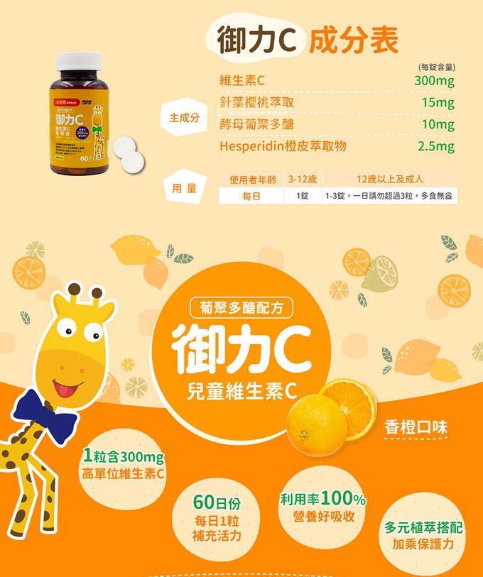 平時都會給孩子補充維生素C,御力C口味孩子超喜歡,大人也很愛喔
