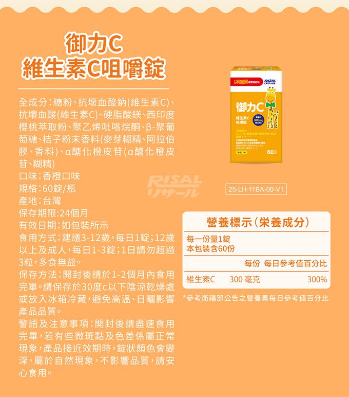 小兒利撒爾Risal - 御力C 維生素C咀嚼錠-60錠/瓶