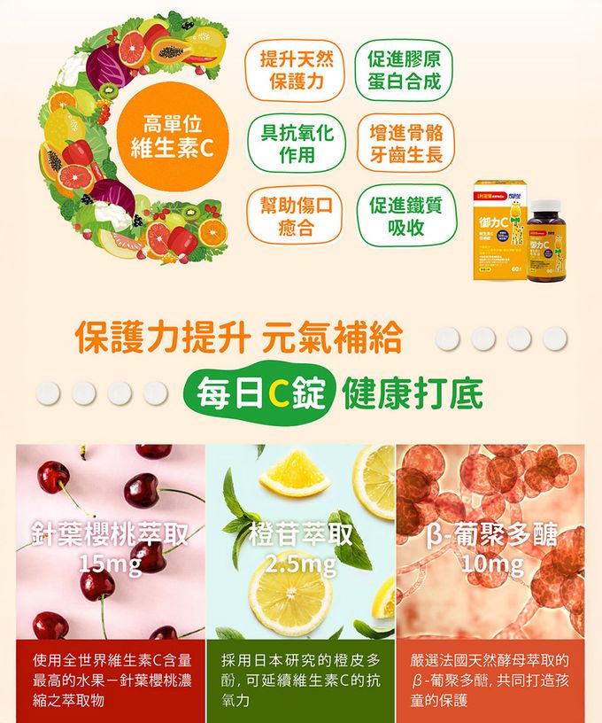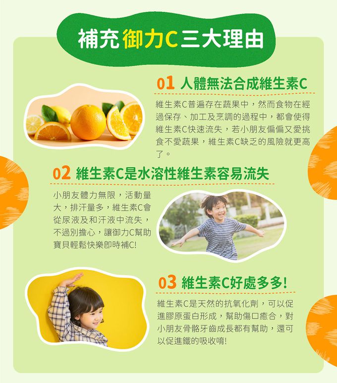 平時都會給孩子補充維生素C,御力C口味孩子超喜歡,大人也很愛喔