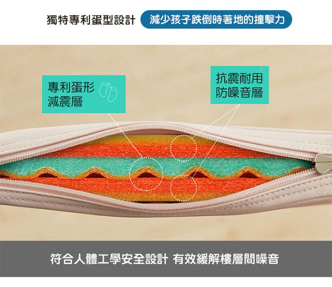 ▲ 環保蛋型海棉具雙重避震功能,大大減低跌倒時的撞擊力