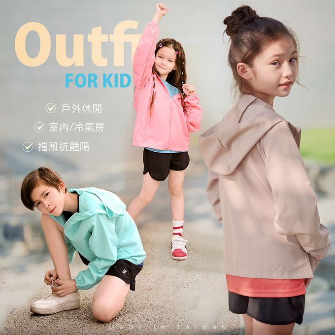 GIAT - 防潑水UPF50+抗UV防風外套-兒童款/連帽-奶茶色