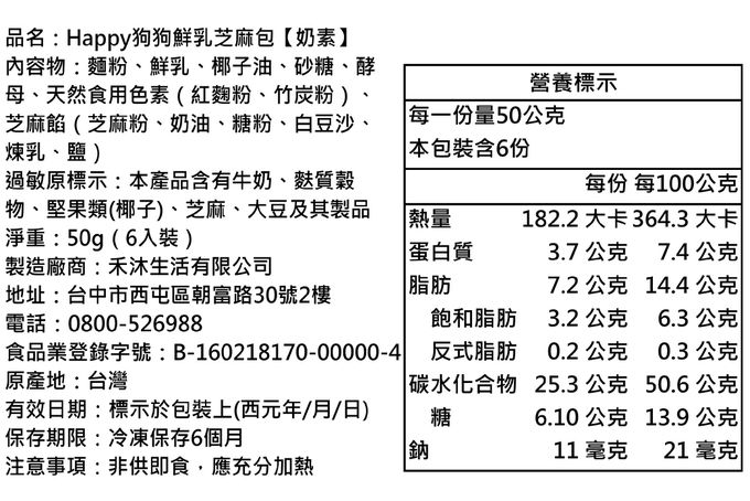 品名:HAPPY狗狗鮮乳芝麻包