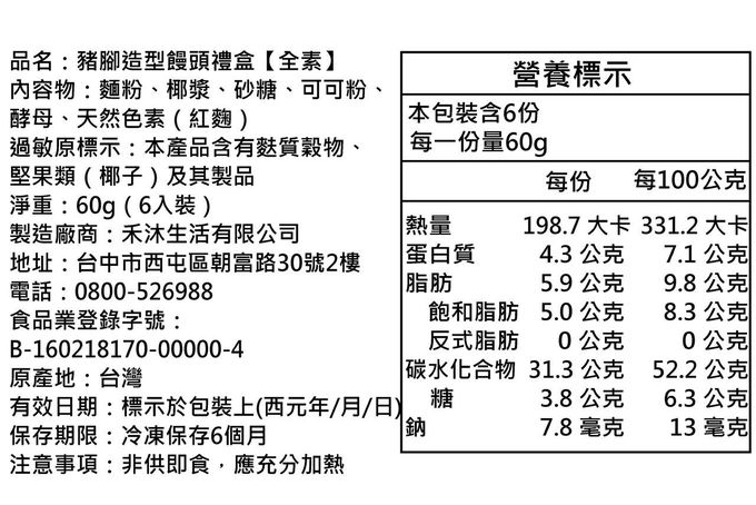 無蛋、無奶、無油、全素豬腳造型饅頭禮盒