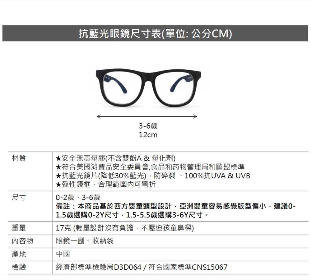 品名:嬰幼兒童光學鍍膜抗UV抗藍光眼鏡