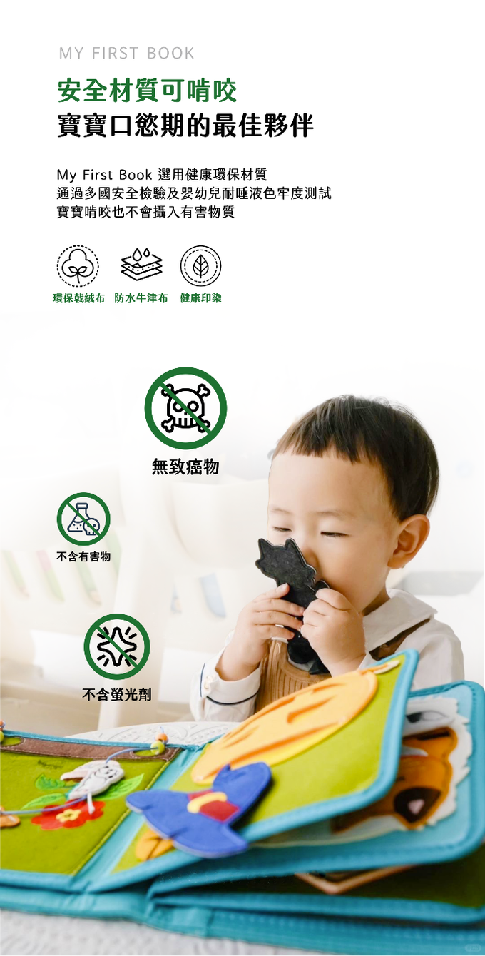 因為豐富的內容,所以有很多擬真的小道具,寶寶們最容易的就是拿起來吃吃看或是咬咬看。不過My First Book全系列通過多項安全檢測,家長們不用擔心孩子把細菌吃下肚!