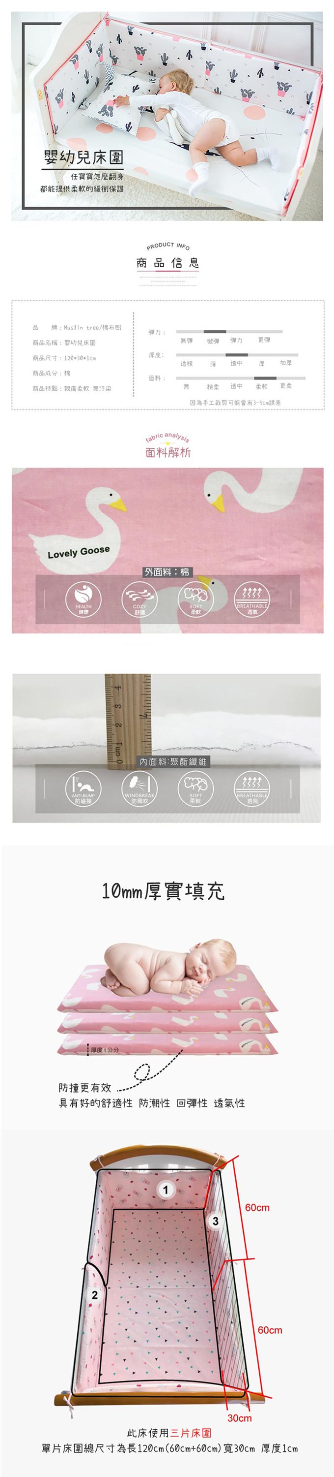 【商品特色】安全防撞/附綁帶可固定在床上/柔軟棉質【注意事項】不可機洗