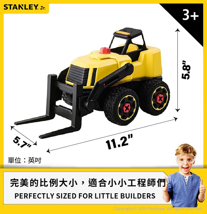與一般工程玩具車最大的不同,每款 STANLEYJr 車車都附上工程小人偶和螺絲起子(編媽私心覺得小人偶超可愛,讓玩具車的互動性又提高了!)。每台車可以拆解成約十個配件,從0%~100%,讓孩子享受自由拼裝的樂趣,還能獲得滿滿成就感。是一套結合「組裝」與「趣味性」的STEAM工程車,非常有STANLEY品牌的風格呢!