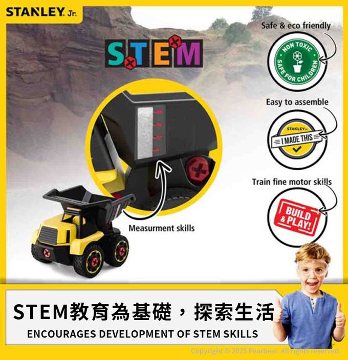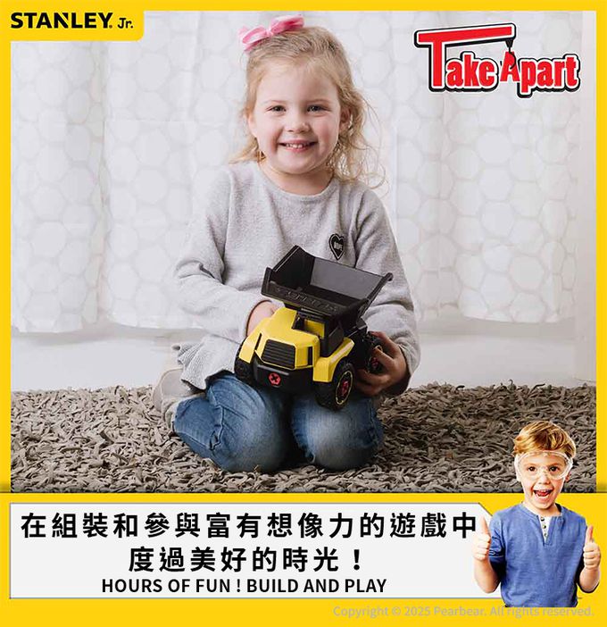 除了電動工具之外,近年來STANLEY也為孩子打造了專屬兒童的工程玩具!孩子最愛的工程車加上STANLEY的經典黃黑配色,「STANLEY Jr.」就此誕生!