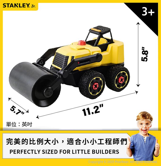 【STANLEYJr】工程車所有的零件包括輪子、車頭、底座,都是可以拆解的,孩子可以練習使用螺絲起子把車子組裝起來,除了可以更了解每一台車的構造之外,在組裝過程中也能提升解決問題的能力
