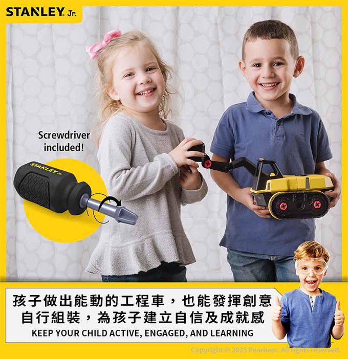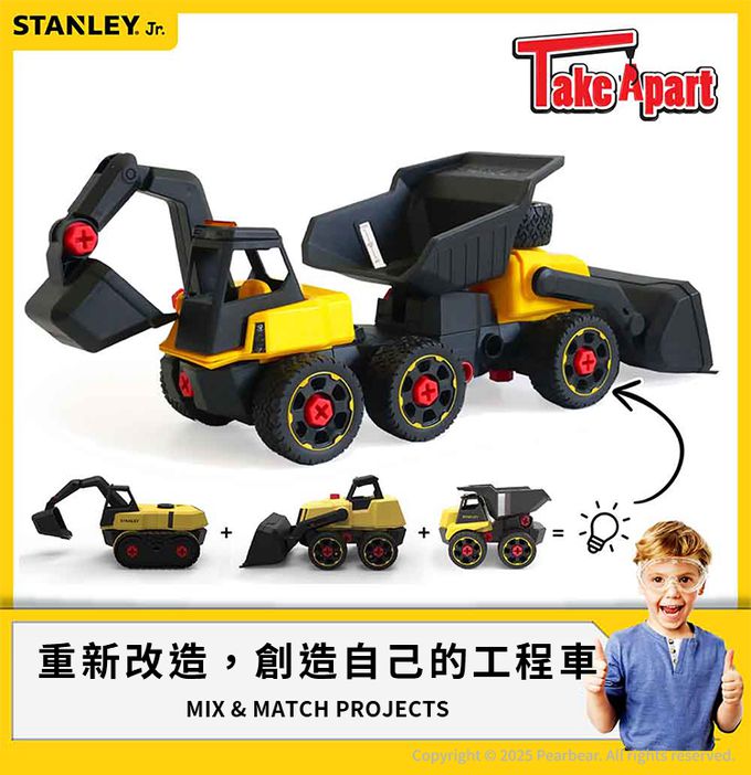 除了電動工具之外,近年來STANLEY也為孩子打造了專屬兒童的工程玩具!孩子最愛的工程車加上STANLEY的經典黃黑配色,「STANLEY Jr.」就此誕生!
