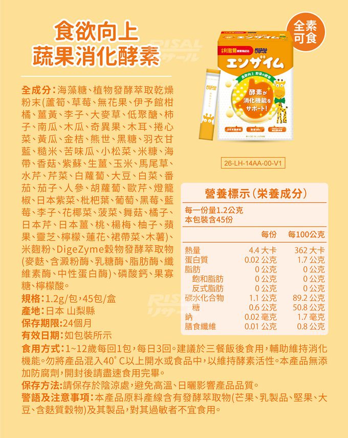 小兒利撒爾Risal - 食欲向上 蔬果消化酵素 二盒組-45包/盒