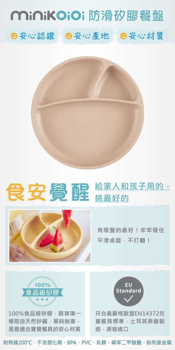這個防滑硅膠餐盤已經用過好幾次了寶寶自己也會拿裡面的東西往嘴裡塞而且它因吸住寶寶都不會翻倒真的很實用