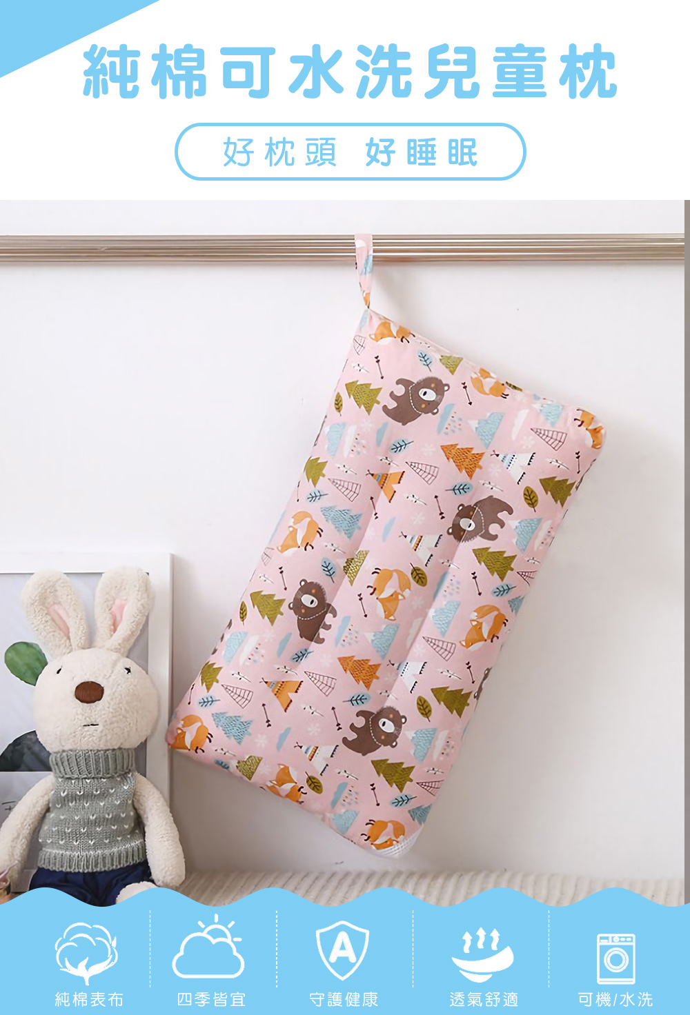 • 品名:台灣製純棉可水洗抑菌兒童枕