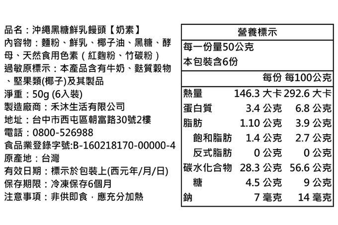 成分:麵粉、鮮乳、黑糖、椰子油、砂糖、酵母