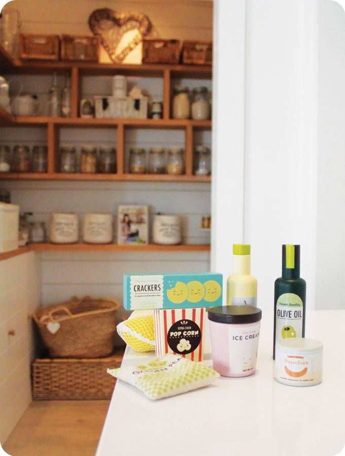 ★ 由實木製成的橄欖油、桃子罐頭、檸檬、沙丁魚...等17樣仿真物品。