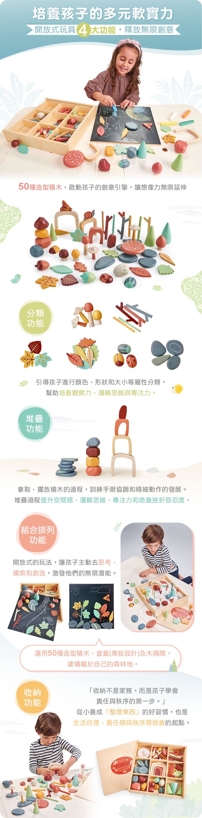 自古人與自然界維持著和諧共處的生活方式,擁有靈魂最初始、純真的孩子正是培養與世界萬物感知連結的時刻,他們因好奇心驅使而喜歡向外研究與探索未知,藉由啟蒙玩具來輔助孩童學習,鼓勵戶外遊戲並教導他們尊重自然萬物,愛惜環境與擁有的一切資源變得格外重要。原木所打造的秘密森林藏寶盒,擁有充滿童趣的圖形設計和生態元素,讓孩子在遊戲中培養認知與美學感受力。