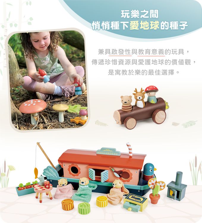 〈Merrywood Tales〉由英國設計師以永續環保為故事發想,透過小人物和小動物運用廢棄小物創造出各種獨特的建築與場景,知足而滿足。這些玩具不僅啟發孩子的創造力與想像力,也傳遞愛護地球的理念,是寓教於樂的最佳選擇。