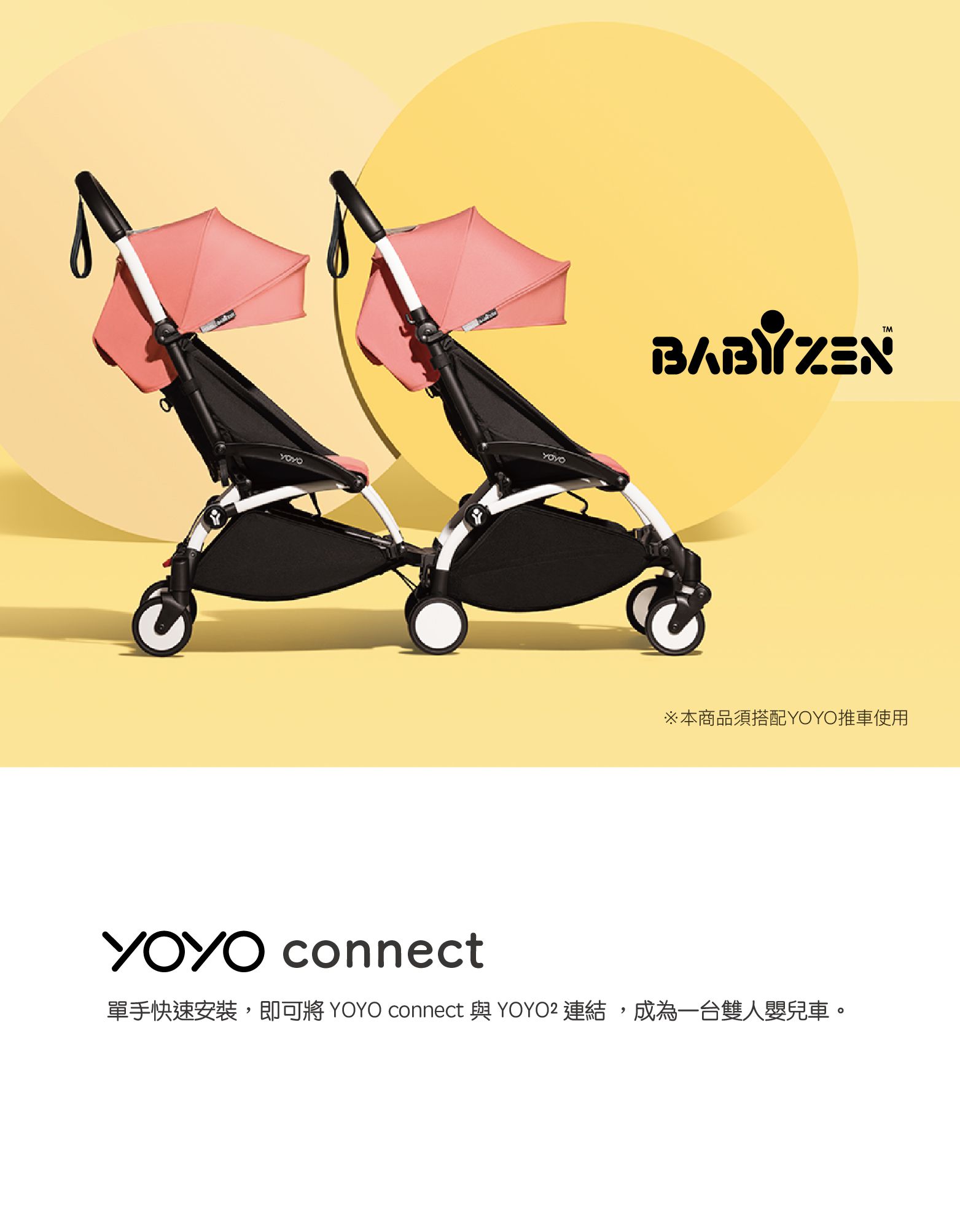 單手快速安裝,即可將YOYO connect 與 YOYO² 連結,成為一台雙人嬰兒車。