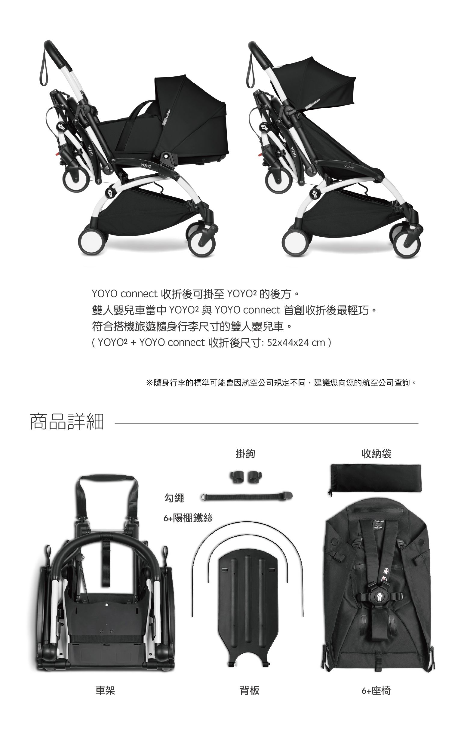 雙人嬰兒車當中YOYO² 和 YOYO connect 首創收折後最輕巧