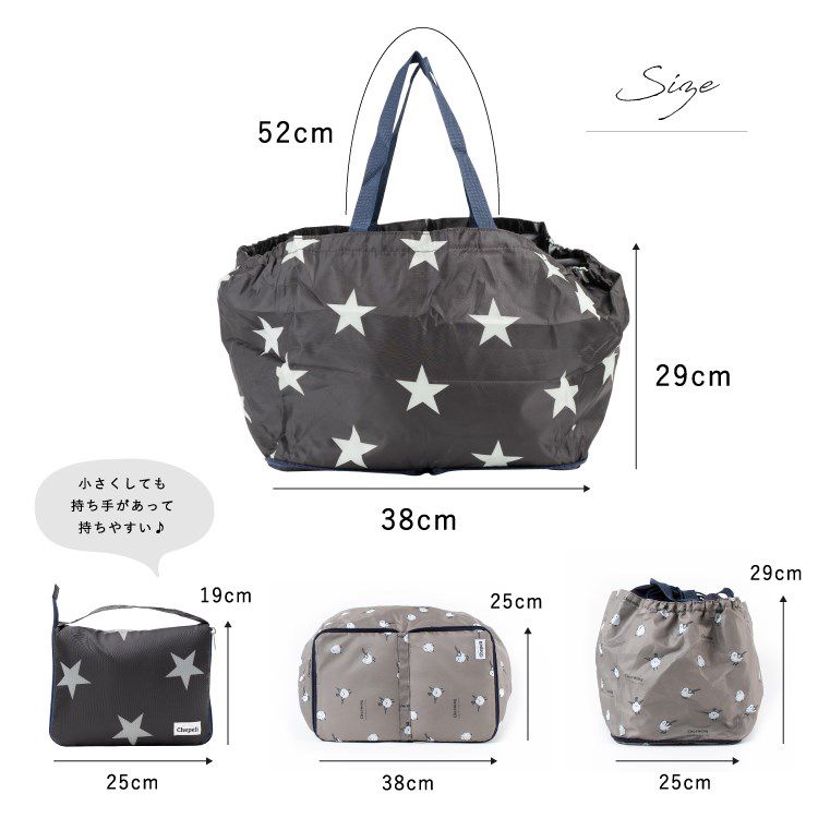 不選用拉鍊,而是束口袋的設計,除了更耐重不易壞,如果有比較高、厚的東西也不怕沒辦法關起來。買完東西後不用手忙腳亂找拉鍊,只要輕輕拉一下就能打包提走~