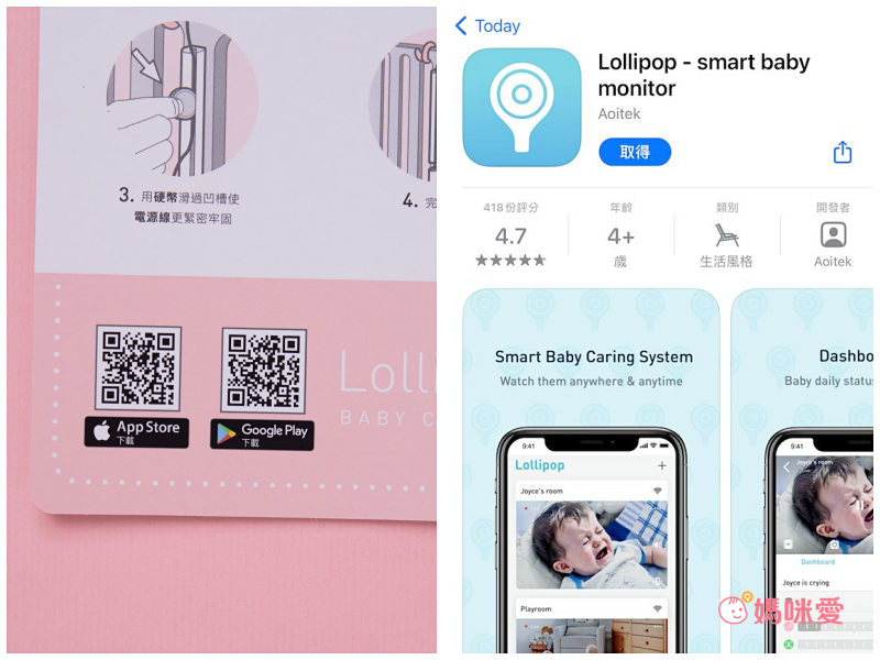 架設好Lollipop 嬰兒監視器後,終於要來體驗它的功能啦!首先要下載APP,可以直接掃描使用說明上的QR code喔~十分方便