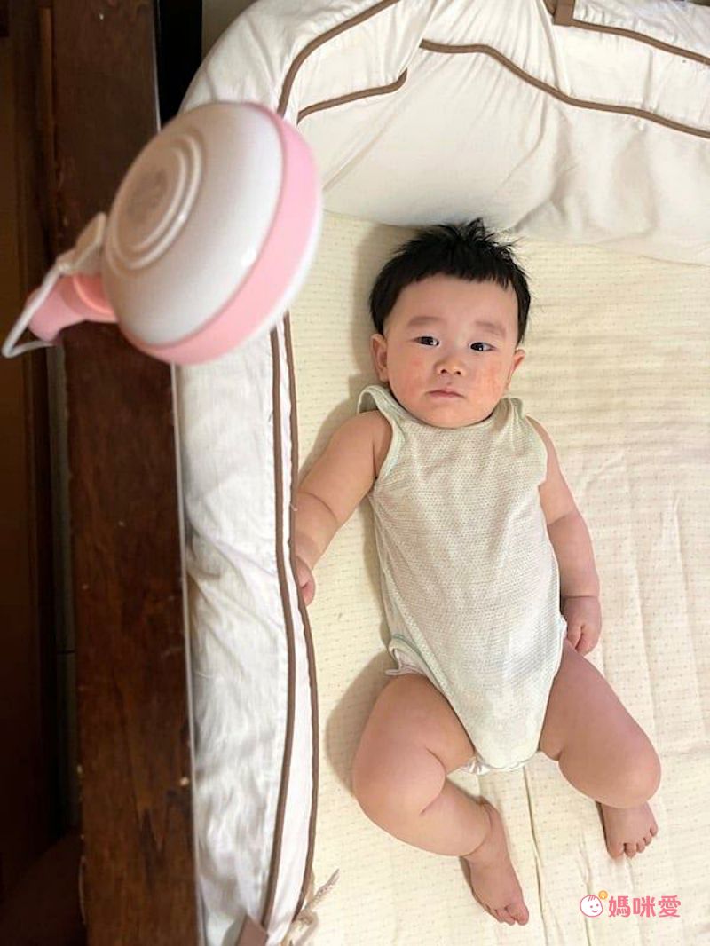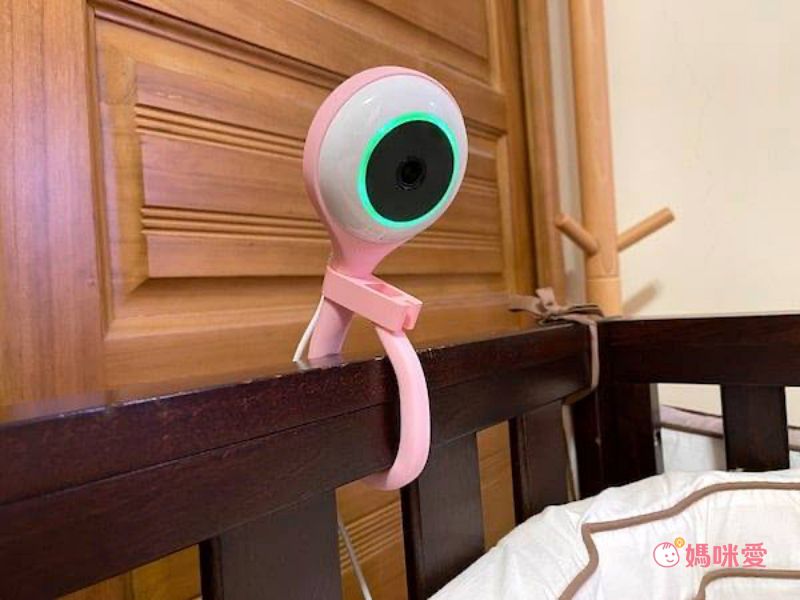 便媽則是選擇固定在嬰兒床上,阿便和阿屁的嬰兒床床框比較粗,但Lollipop 嬰兒監視器仍然能穩穩的固定住!