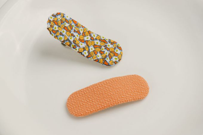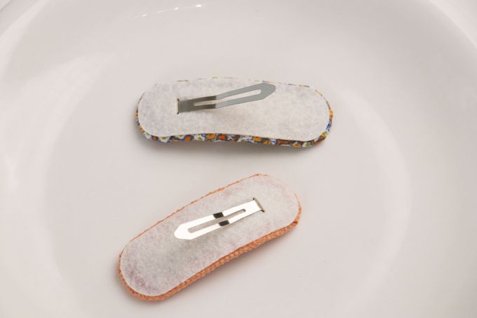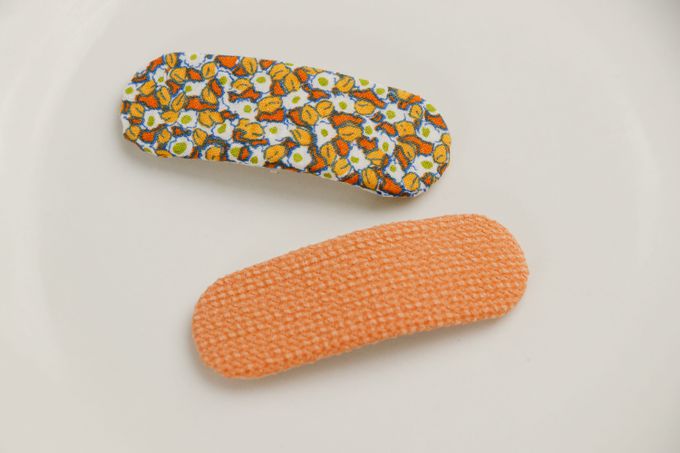甜美印花布藝髮夾2件組-橘黃色