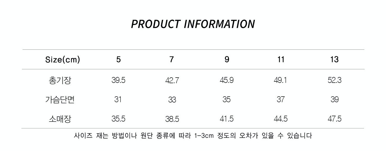 韓文由上而下為:衣長、胸寬、袖長。