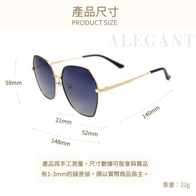 夜香繽漸層偏光鏡片設計,幾何典雅設計鏡框勾勒鏡片線條,設計優雅而精緻使復古與現代美感平衡調配,增加配戴的舒適度收合臉頰線條,修飾臉型、顯小臉的視覺效果可調式鼻墊,低鼻樑也適合配戴抗UV400有效阻隔紫外線傷害,時尚又吸睛最新製程強化技術,提升視野、深淺適中景象超清晰採用POLARIZED寶麗來偏光鏡片,讓強烈眩光變得柔和、視線更清晰