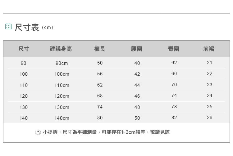 尺寸表皆為水平測量,會因布料彈性、水洗處理、測量起訖點等因素, 與實際商品尺寸略有誤差。