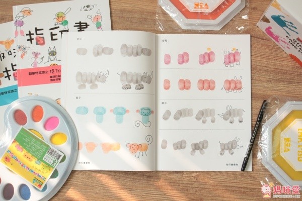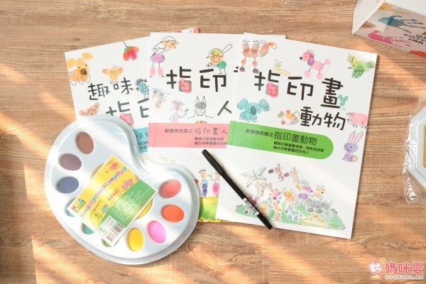 禮盒組裡面包含動物書、人物書和趣味書三本唷!還有指印台跟黑色彩色筆,一起動動手完成美麗的圖畫吧!