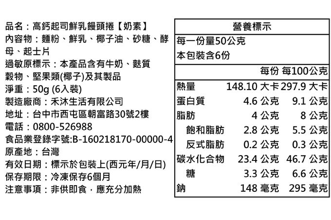 品名:高鈣起司鮮乳饅頭捲