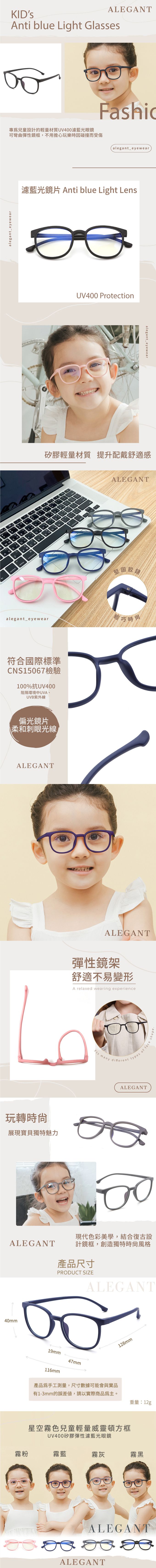 以經典的霧色方框造型作為設計主軸,配戴起來活潑有型~從書本到3C,螢幕使眼部負擔與日俱增,保護視力從現在開始,極輕重量耳朵沒負擔,彈性佳不怕碰撞。鏡架輕軟Q彈超好戴,上學或休閒,適於用眼過度的新世代。專為兒童設計的矽膠輕量材質濾藍光眼鏡,為可彎曲彈性鏡框,不用擔心兒童在玩樂時因為碰撞而受傷。