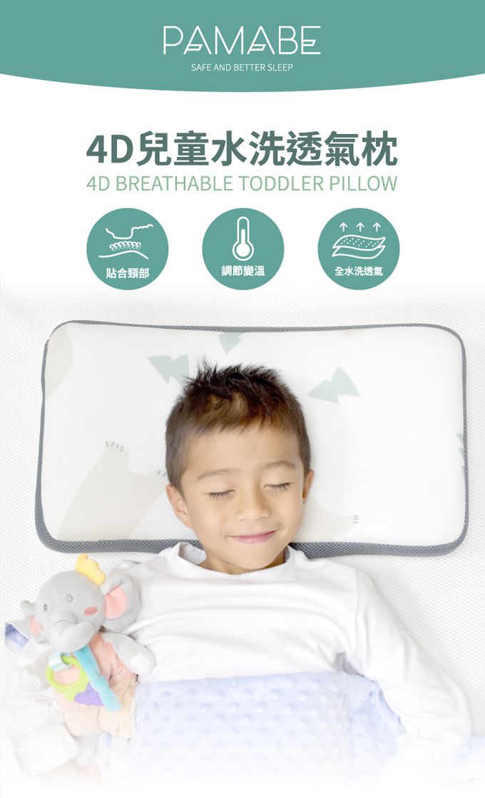 PAMABE - 4D兒童水洗透氣枕-Q比小象 (50x30x4.5cm)-買就送無紡布外出提帶