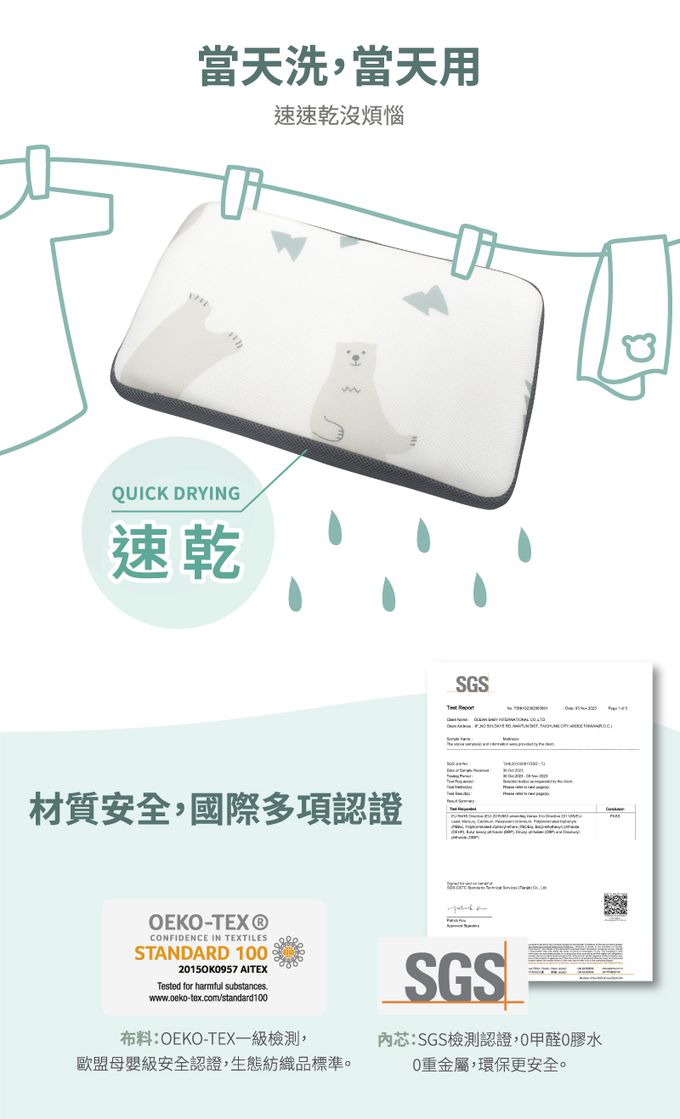 • 內芯可水洗,速乾材質不怕孩子流口水