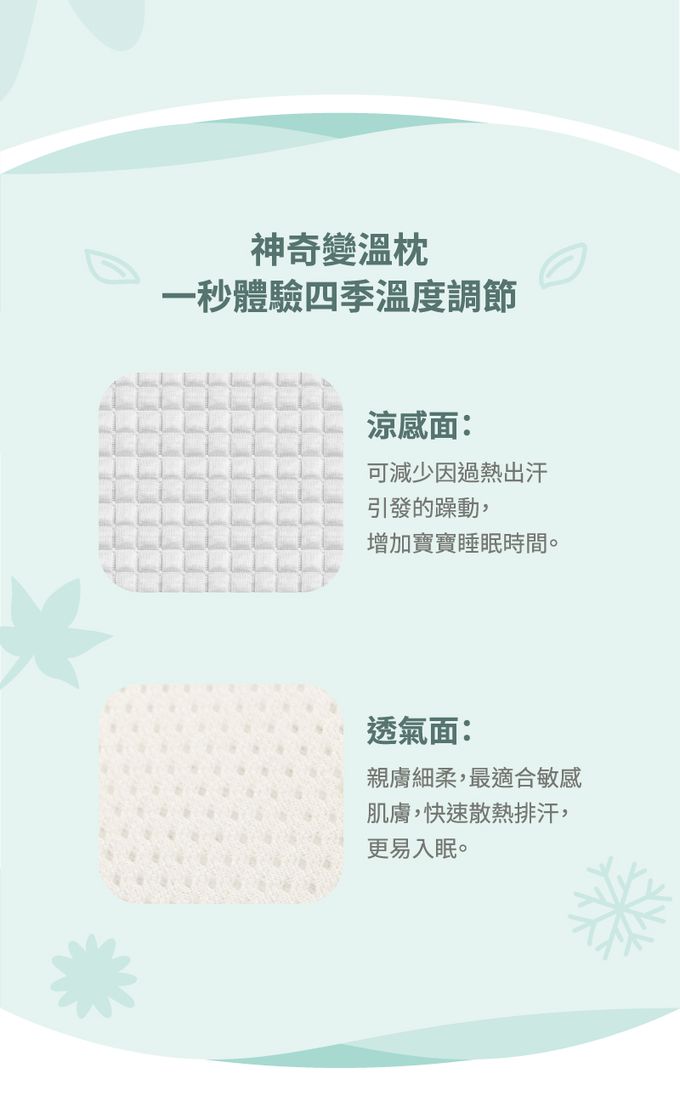 • 獨特枕套雙面設計、冬夏都適用
