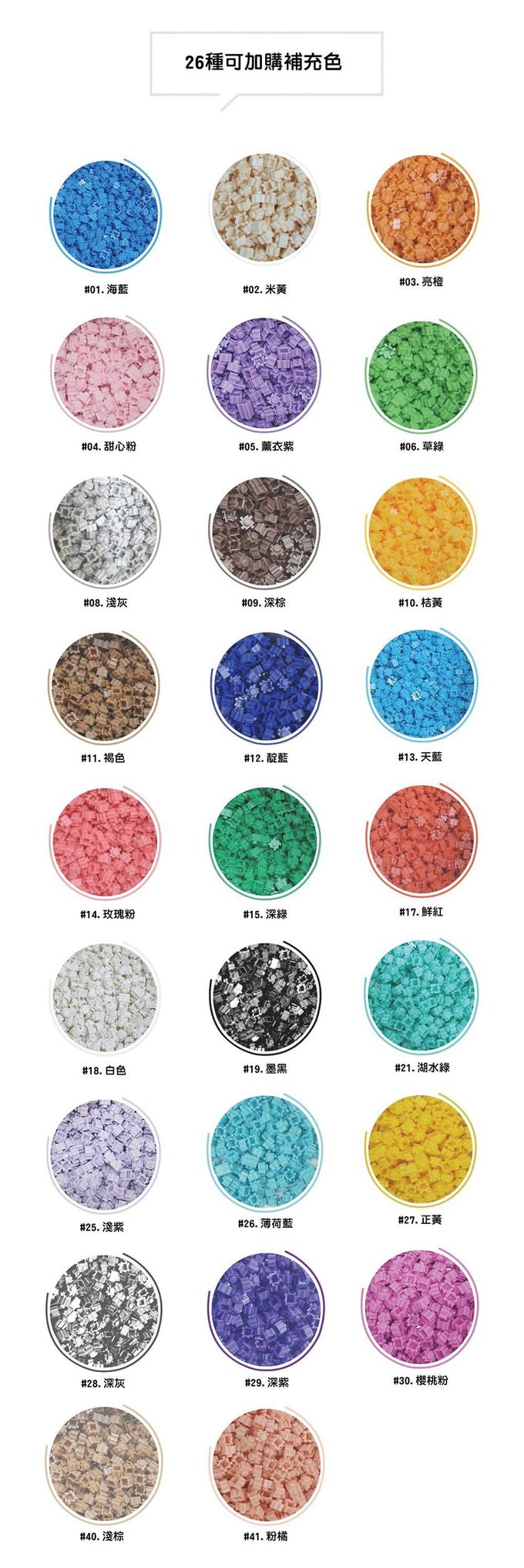 除了拼豆組,還有26色的拼豆擴充包,所有造型一次湊齊!