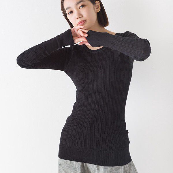 [定番]純棉彈性羅紋針織上衣