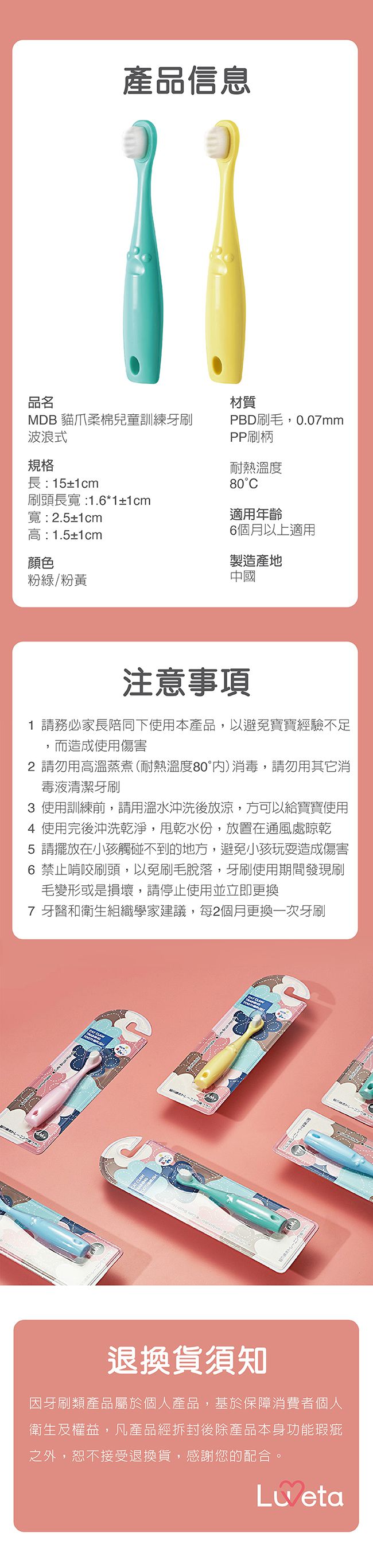 • 品名:MDB 貓爪柔棉兒童訓練牙刷