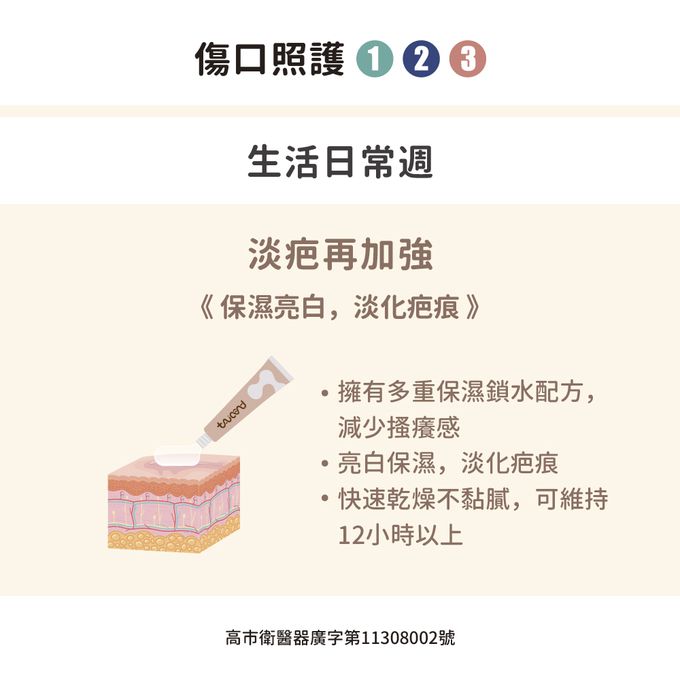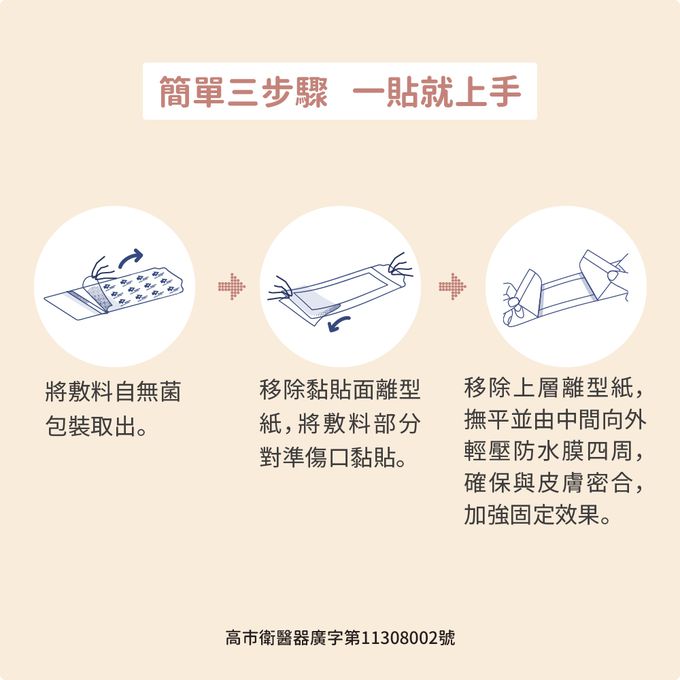 4. 待傷口部位及周圍皮膚清潔乾燥後,再使用本產品。