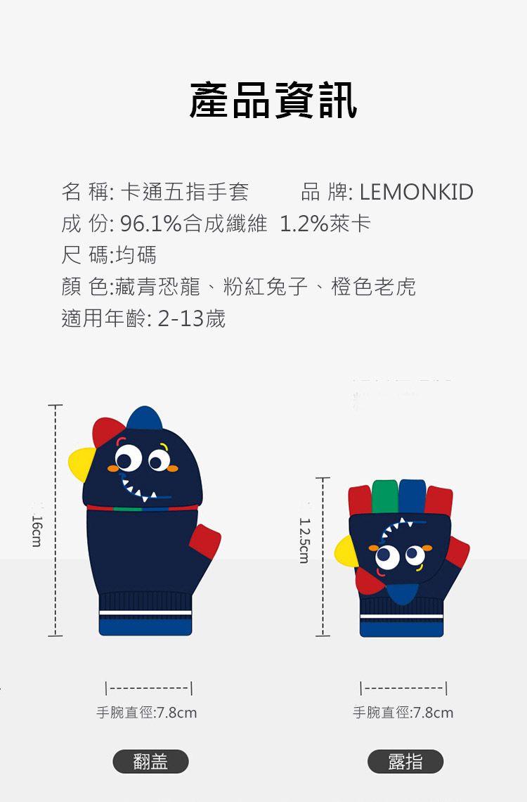 韓國lemonkid - 兒童針織五指手套-橙色老虎 (均碼(手腕直徑7.8cm))