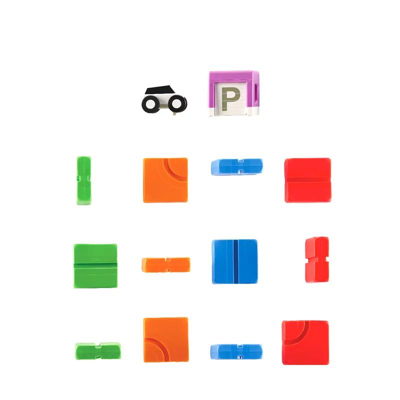 Qbi 全系列的款式都可以互相拼接,6 面軌道的設計也是相同的,軌道路線可以無限擴充之外,也可以發揮創意設計不同顏色的圖案喔