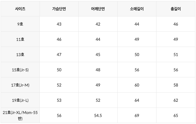 • 尺寸:9號[107-114cm, 18~21kg]、11號[115-122cm, 21~25kg]、13號[123-129cm, 25-30kg]、15號[130-138cm, 30~35kg]、17號[139-145cm, 35~41kg]、19號[146-152cm, 41-47kg]、21號[153cm以上, 47kg以上,媽媽可穿]