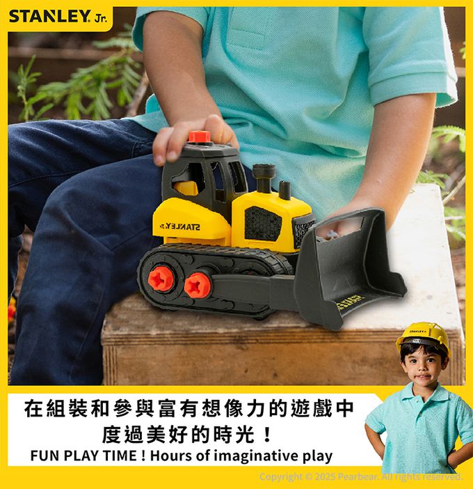 STANLEYJr.工程車所有的零件包括輪子、車頭、底座,都是可以拆解的,孩子可以練習使用螺絲起子把車子組裝起來,除了可以更了解每一台車的構造之外,在組裝過程中也能提升解決問題的能力。