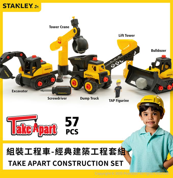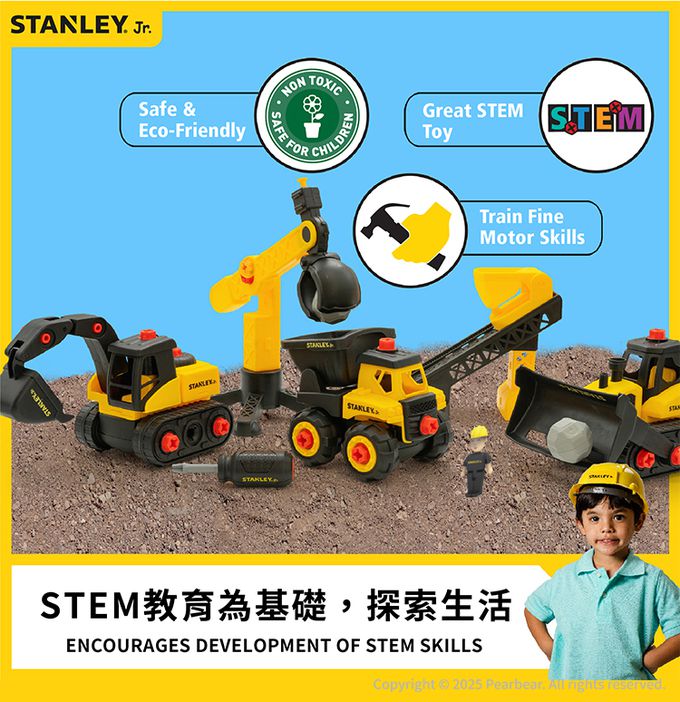 除了電動工具之外,近年來STANLEY也為孩子打造了專屬兒童的工程玩具!孩子最愛的工程車加上STANLEY的經典黃黑配色,「STANLEYJr.」就此誕生!