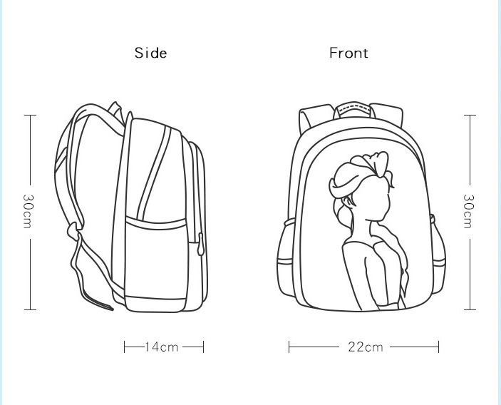 3D立體超輕量透氣減壓書包-卡通人物艾莎側臉-藍色 (建議90~120cm)-22x14x30cm