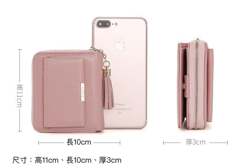 側邊的拉鍊零錢袋設計好拿放零錢,還有2個隔層可分類收納。紙鈔部分以金屬按扣設計,方便開闔好拿取