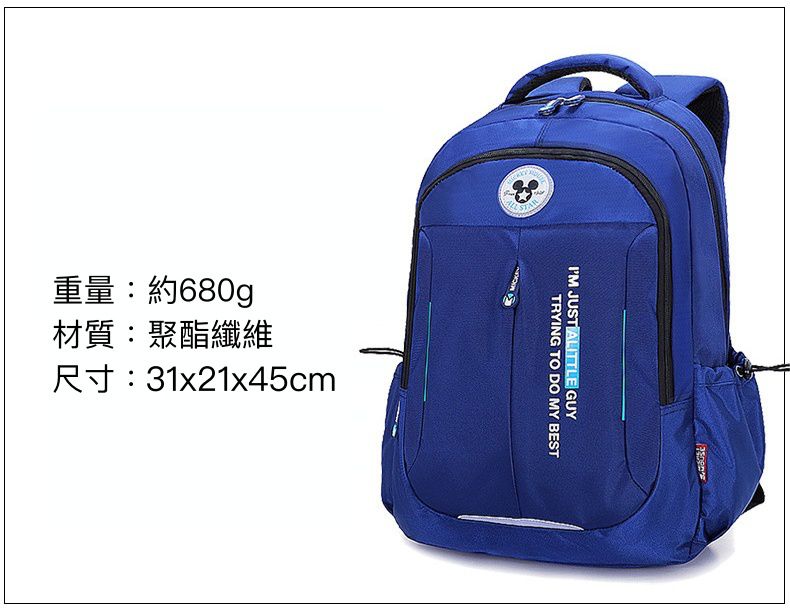 大容量多隔層輕量書包-卡通人物米奇-藍色 (建議身高130-150cm)
