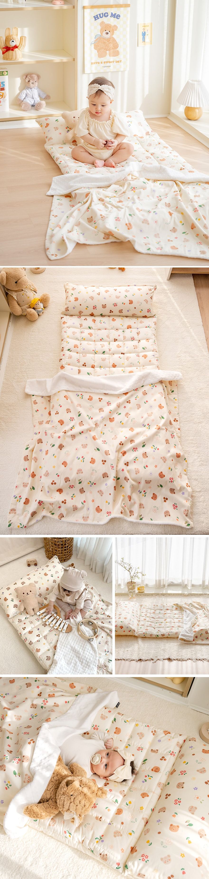 睡袋裡所附的小被被也是雙面材質,觸感也非常細膩柔軟~ *這款的被子和墊子是分開的,並無拉鍊連結呦*