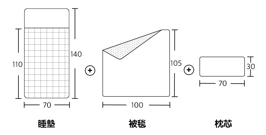 廠商附的提袋只是睡墊的收納袋,把枕芯和被子都裝進去的話還是可以裝,但會有點緊繃!